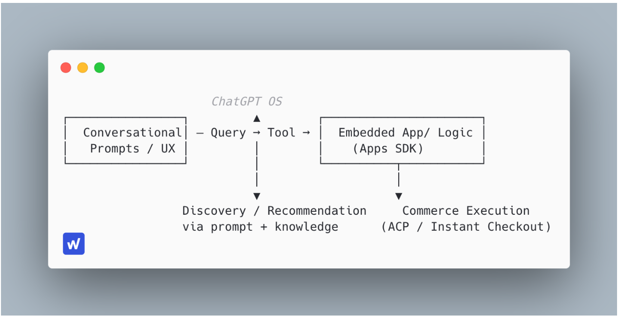 Following the announcements from OpenAI on October 6th, brands start to have real ways to operate inside ChatGPT. At a very high-level this is the map for anyone considering entering (or expanding) into the ChatGPT ecosystem: